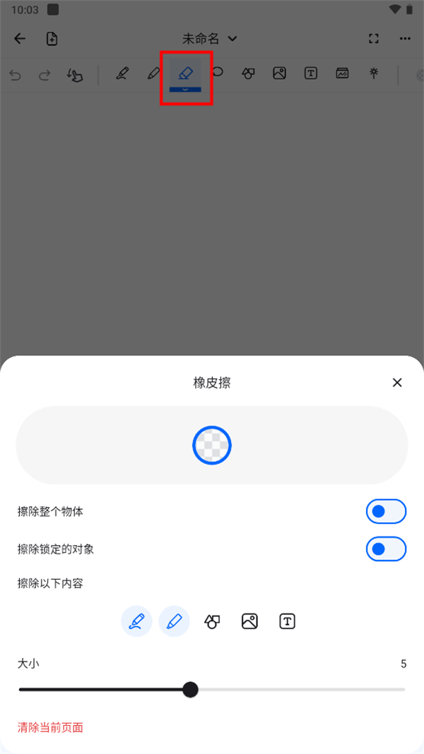 启用“擦除整个对象”后,系统将整笔画一次性清除;开启“擦除锁定对象”则允许对已锁定内容进行擦除。此外,用户还可自定义可擦除对象类型,默认仅钢笔与荧光笔内容可被擦除。