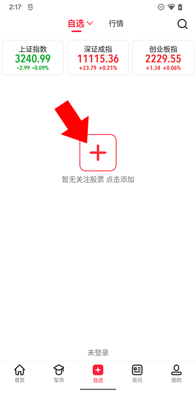 1、在本站下载并安装股军师app,打开后来到下方界面,我们点击下方导航栏内的自选选项