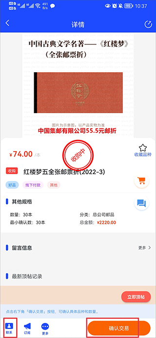 5. 发布商品信息后,静待其他用户联系收购或出售即可。