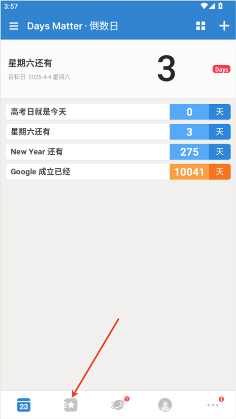 1、打开倒数日app,点击下方的第二个按钮。