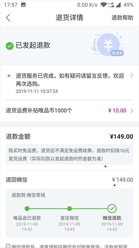 按提示选择退货方式并确认商品信息,即可提交退款申请: