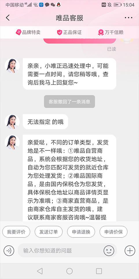 2. **仅支持在线支付**:因清关需核对支付信息,唯品国际订单不支持货到付款,须在下单时完成线上支付。