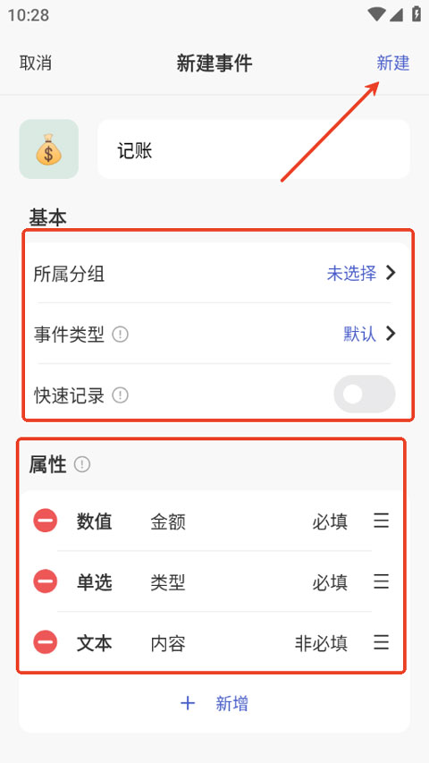 4、填写所属分组与具体事项内容,点击“新建”即可保存;