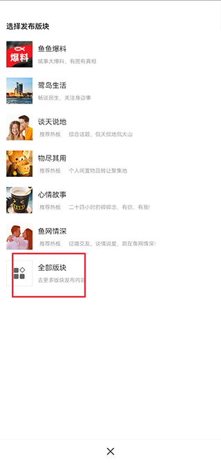 2、根据内容类型选择对应板块;若未找到合适分类,可点击“全部板块”查看更多选项。