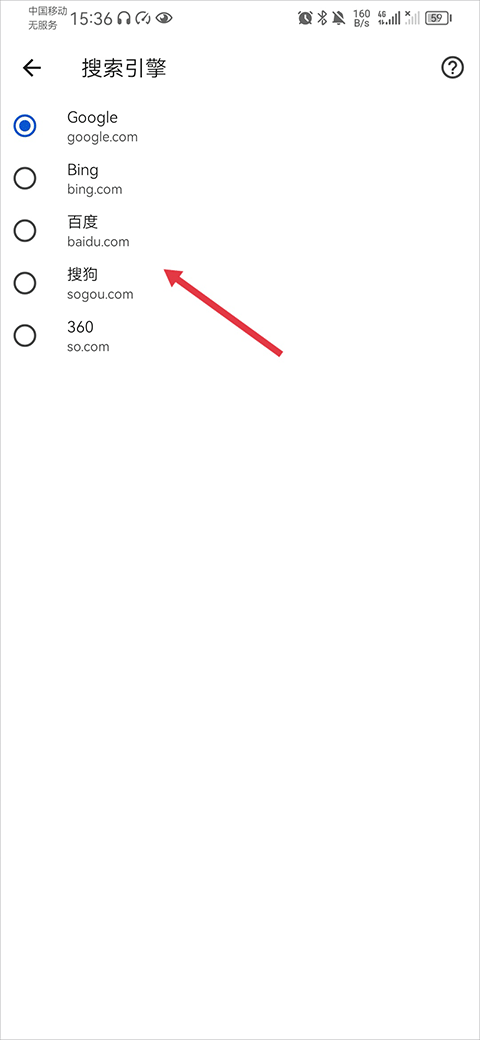 - 从列表中选择您希望切换的目标搜索引擎即可生效。