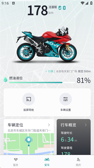 1. 车辆状态实时监测 随时掌握爱车健康状况,包括剩余油量、电瓶电压、水温、总里程等关键数据,让骑行更安心。