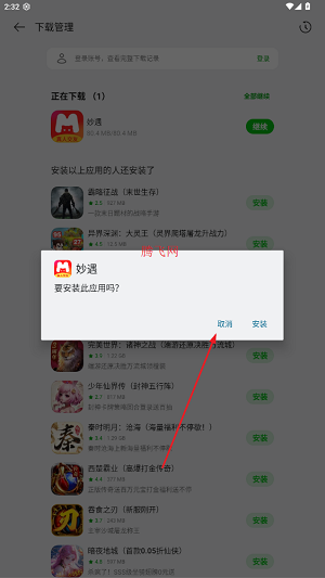 其后可以在下载管理页面中看到中止安装的应用!
