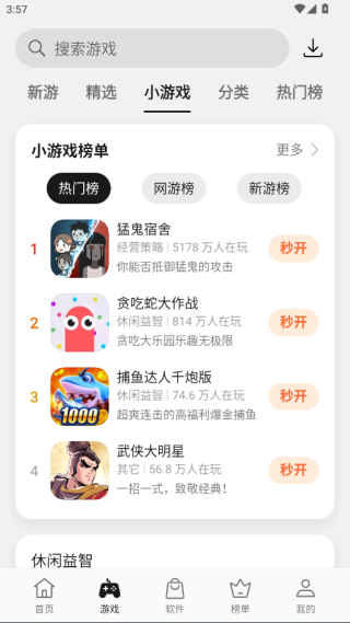 2、还可以点击小游戏榜单,快速查看内容。