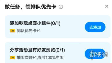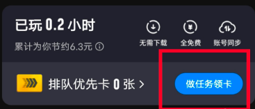 5、做完相应任务,之后便能领取排队优先卡。