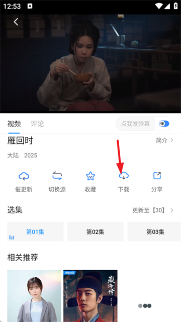 3、进入影视播放页面,点击右上角的TV投屏标志;